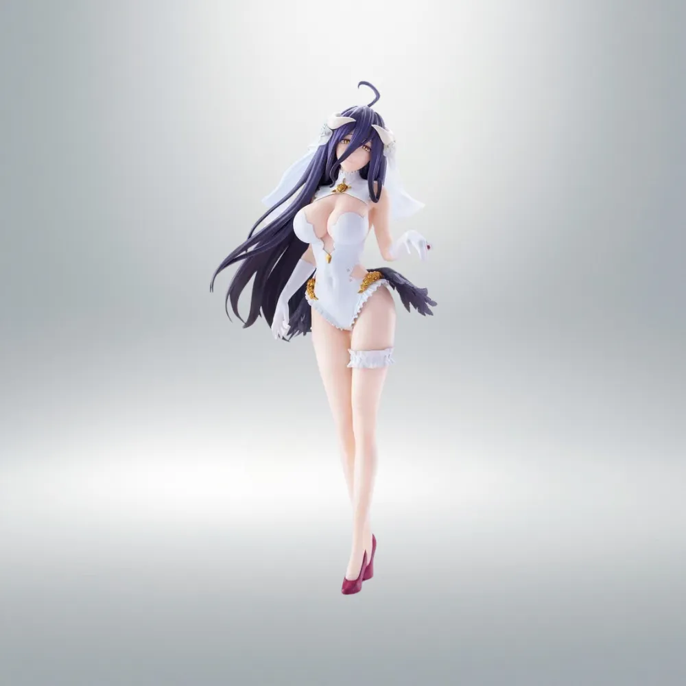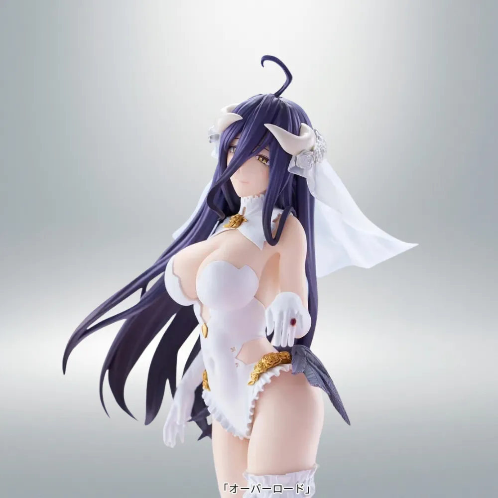 Desde el exitoso anime Overlord, Albedo llega en una espectacular versión Wedding Ver. para la reconocida línea GLITTER&GLAMOURS de Banpresto, famosa por sus figuras de mayor tamaño y acabado estilizado.