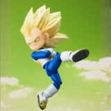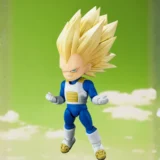 Esta versión muestra a Vegeta en su transformación Super Saiyan 3 en formato mini, destacando su imponente presencia y característico estilo de combate. Gracias a su avanzado sistema de movilidad, permite recrear poses dinámicas y escenas llenas de acción propias de la saga.