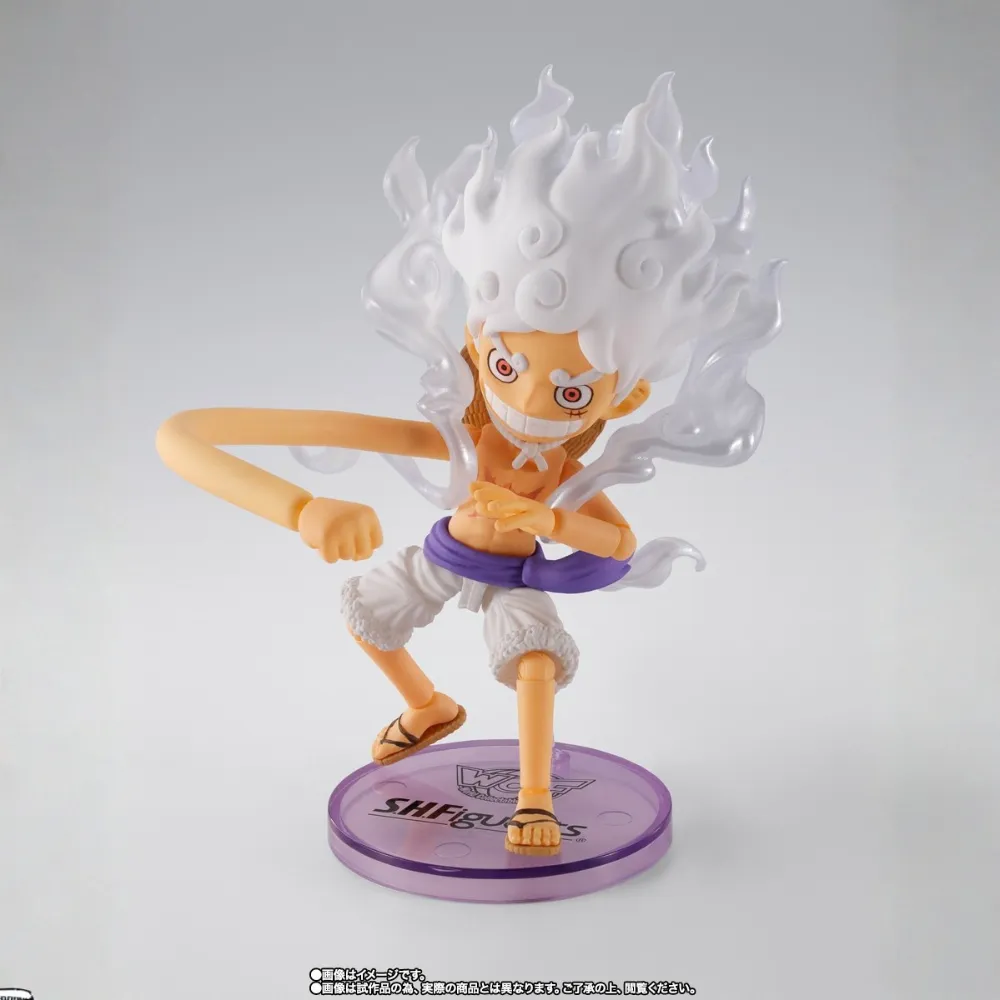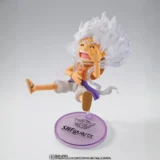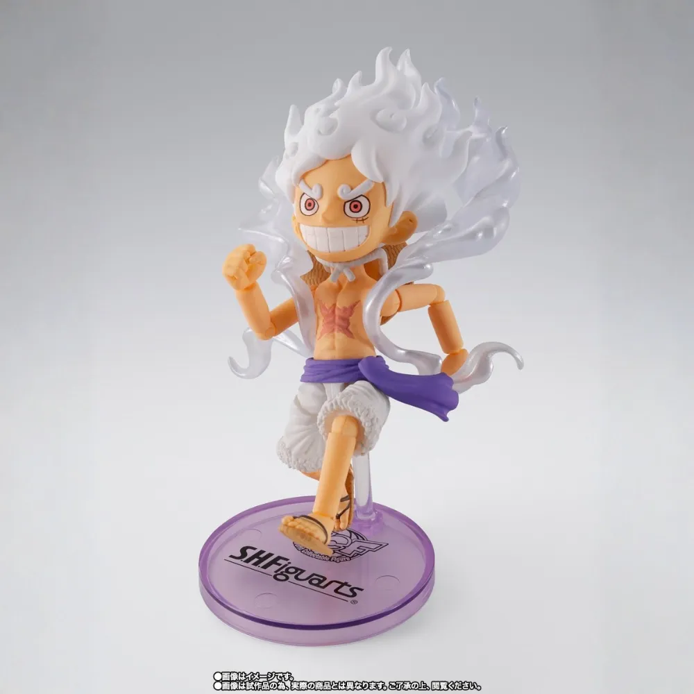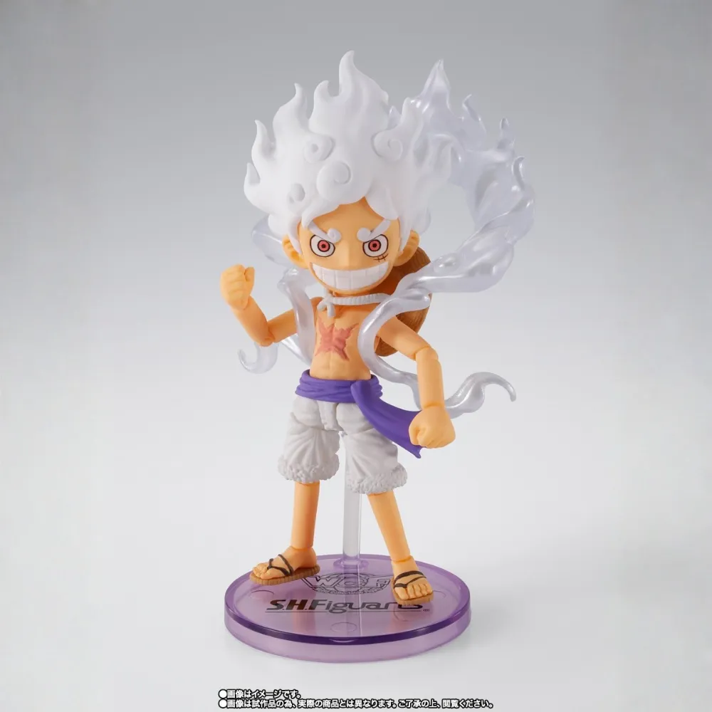 La World Collectable Figure x S.H.Figuarts Monkey D. Luffy Gear 5 fusiona el estilo compacto WCF con el dinamismo y detalle de S.H.Figuarts, celebrando la transformación más impactante de Luffy en One Piece. Una pieza explosiva y esencial para fans del Gear 5.